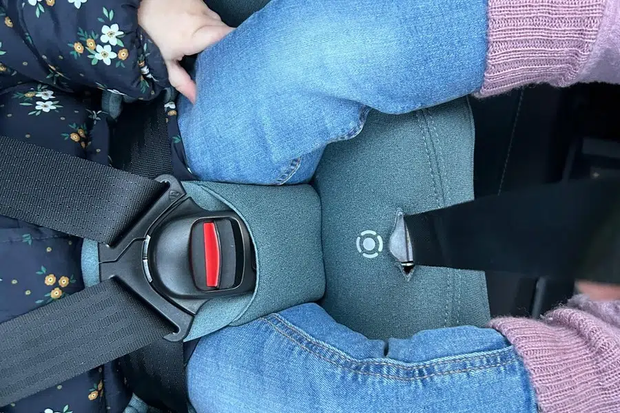 De Thule Elm heeft een driepunts-gordel. Je kunt de gordel strakker trekken door aan een band te trekker. Eenmaal op bestemming, vond ik het wel fijn de gordel eerst weer losser te maken. Zodat ik mijn dochter eenvoudig uit het autostoeltje kon halen. Dit is ook erg simpel, door op een klipje te drukken en aan de banden te trekken. Ik vind het erg praktisch dat je het autostoeltje kunt draaien. Hierdoor kan ik mijn dochter eenvoudig in de autostoel zetten en heb ik duidelijk zicht op de gordel tijdens het bevestigen.