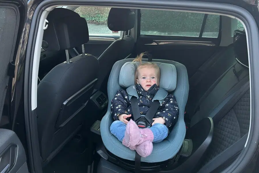 De eerste reactie van onze dochter vond ik toch wel het spannendste. Gelukkig ging ze direct erg tevreden in het stoeltje zitten. Voor het eerste ritje in het nieuwe stoeltje koos ik voor de ligstand en draaide ik de stoel naar achteren. Je kunt de Thule Elm autostoel op twee standen zetten; rechtop, of in de ligstand. Je kindje ligt dan niet helemaal achterover, maar kan wel lekker uitrusten in het stoeltje.