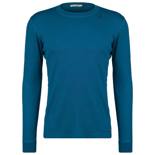ACLIMA maakt fijne kleding van wol. We hebben een voorgaande editie dit shirt al zeker 5 jaar. En het gaat nog wel een paar jaar mee. Gelukkig maar, want de 100% merino wol kleding van dit merk is prijzig. Maar met dit shirt zal je het geen moment te warm of te koud hebben. Het is ontwikkeld om te dragen tijdens intensieve activiteiten en reguleert je lichaamstemperatuur. Zweet wordt binnen no time afgevoerd. Het shirt draagt comfortabel en niet al te strak. Bij extreme kou kan je de kraag omhoog trekken, of helemaal om je hoofd heen ‘vouwen’. Wanneer het warmer wordt, draag je alles omlaag en kan de rits van het shirt open.
