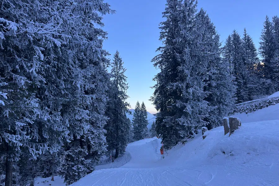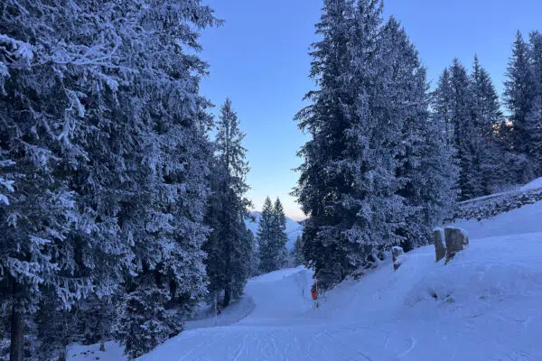 Ik heb vooral genoten van de lange afdalingen in het skigebied. Elke keer waneer ik een lift omhoog nam, lag er een flinke afdaling te wachten. De lange dalafdaling (piste 6) is echt mijn favoriet. Deze 9 km lange afdaling start met een weids uitzicht op de top en eindigt met een breed pad tussen de besneeuwde bomen.