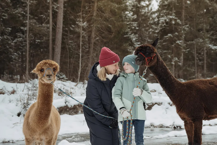 Wel een heel vermakelijke manier om de omgeving te ontdekken. Tijdens deze rustige tocht leid je zelf een alpaca of lama door het sneeuwlandschap. Het tempo ligt laag, dus iedereen kan meedoen: families met kinderen vanaf 6 jaar, of vanaf 9 jaar onder begeleiding. Onderweg leer je meer over de dieren en geniet je van het winterlandschap op een manier die bijna meditatief voelt.